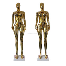 Maniquí femenino BBL de oro galvanizado de lujo de cuerpo completo con soporte | Pantalla brillante abstracta para ropa y lencería